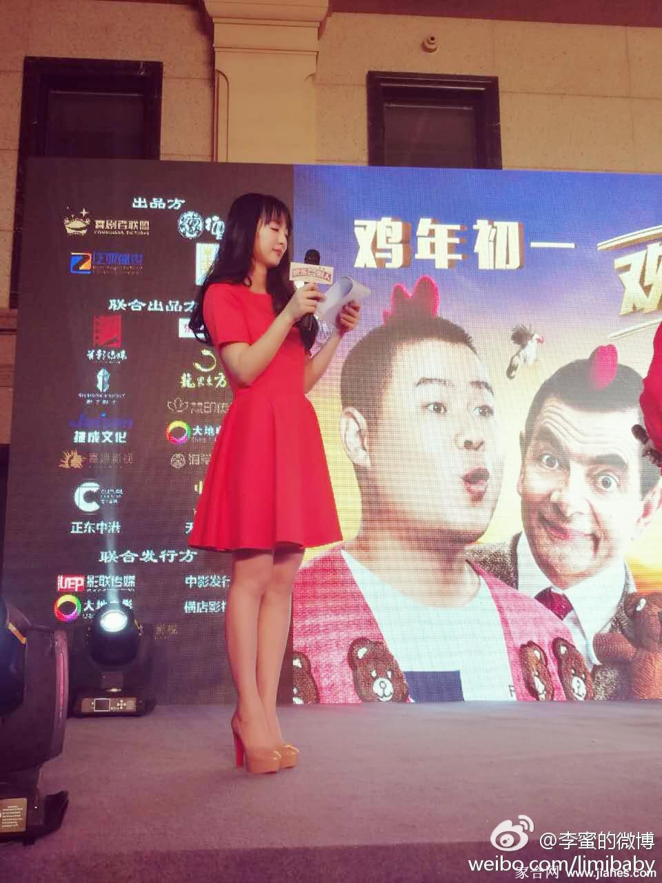 李蜜身着修身红裙侧身而立,裙摆摇曳间勾勒出优雅的腰臀曲线,回眸瞬间眼神温柔而坚定